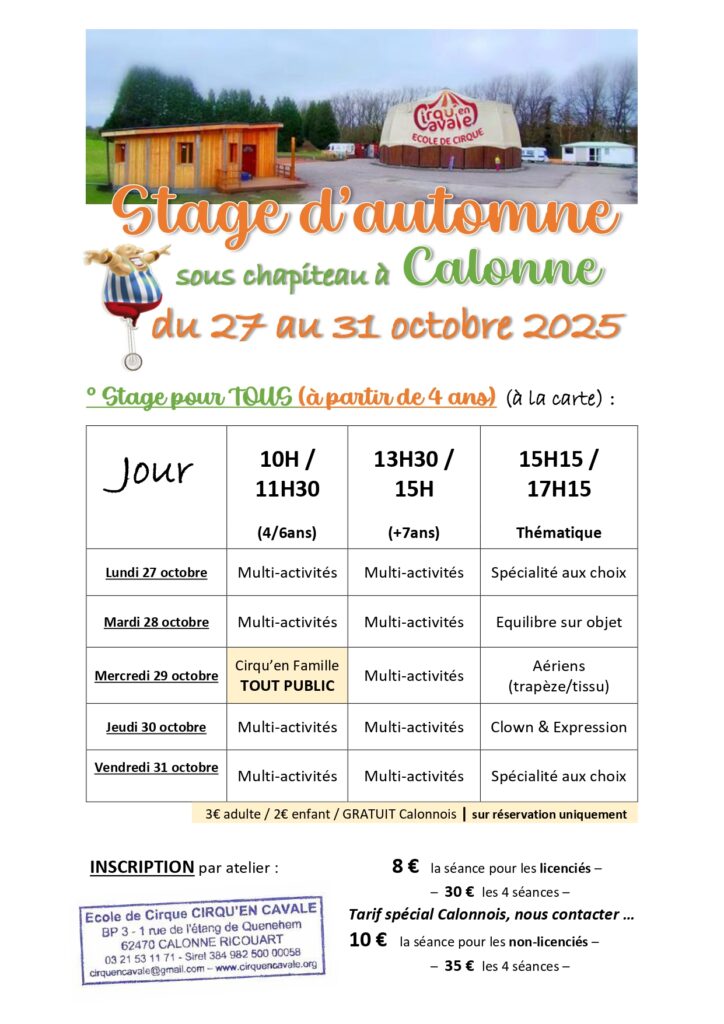 Rendez-vous par mail sur cirquencavale@gmail.com ou au 03. 21. 53. 11. 71